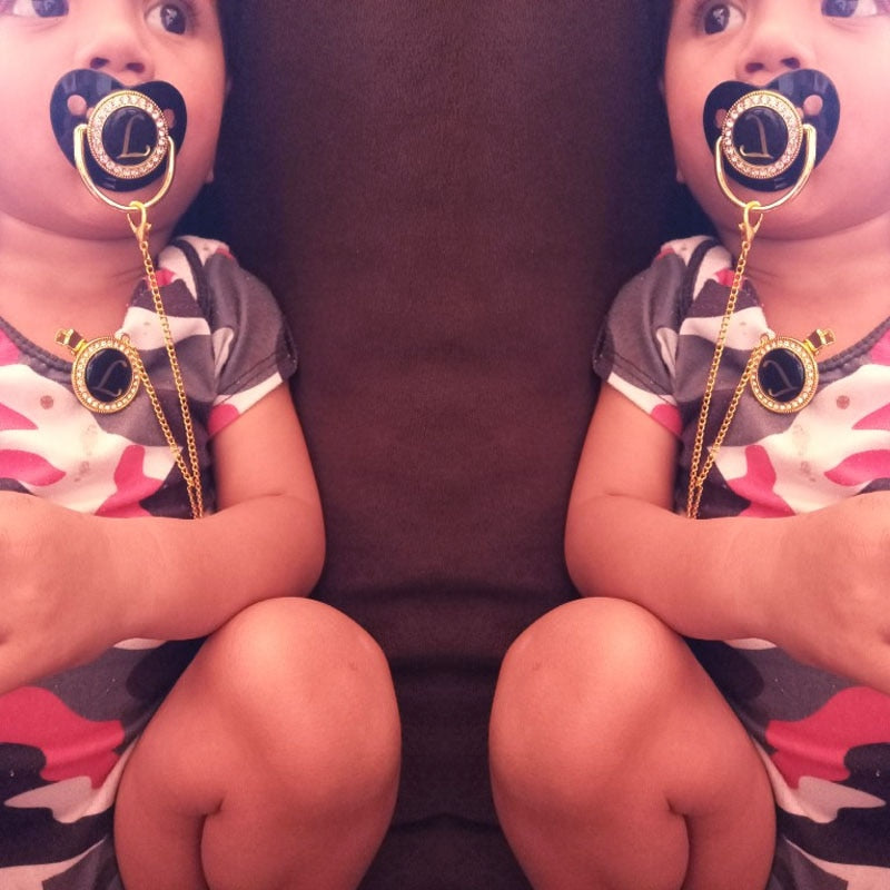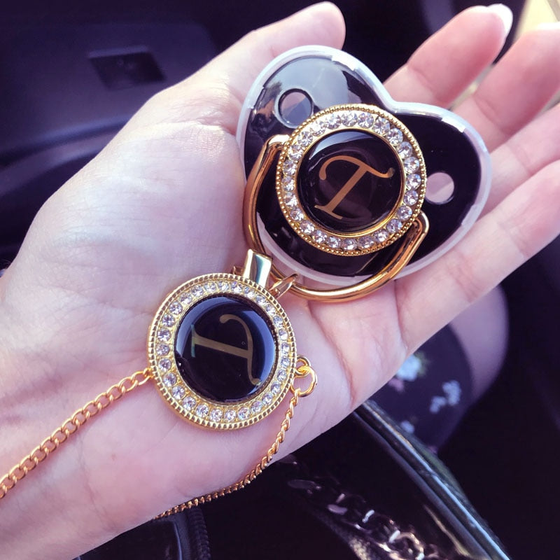 Baby Black Bling Pacifier With Clip Alphabet Letter Infant Pacifier Gold Letter Initials